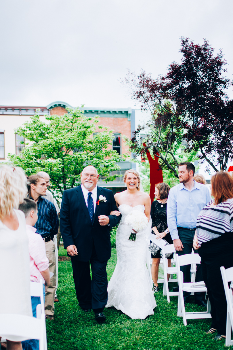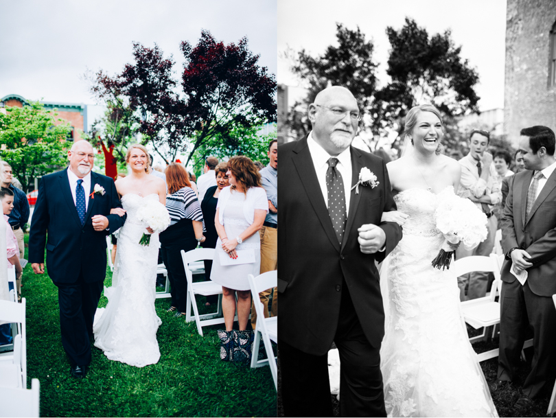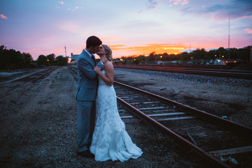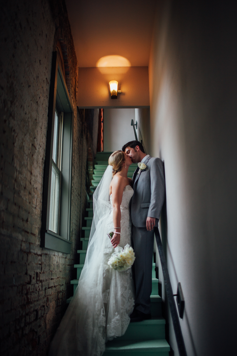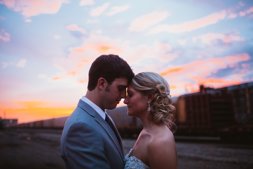 The rain came, but not until after the ceremony ended. And I mean right as they were walking back down the isle in celebration, the rain fell! We ran into the back stairwell and watched through the windows as the guests grabbed chairs, and ran for cover. It was the perfect timing and you couldn’t help but feel that is was divinely so. The sunset rewarded us with blazing oranges and vibrant pinks, and Brian and Abby were on board for making the most of it.